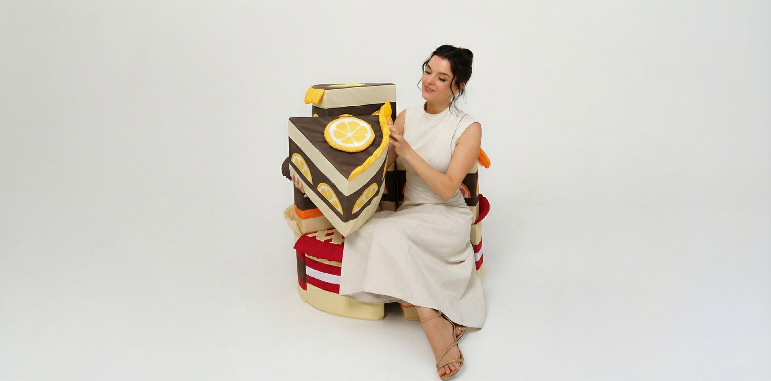 · Чехол: Износостойкая ткань «Оксфорд» в аппетитных цветах (кремовый, розовый, шоколадный, белый). Чехол каждого «кусочка» сшит отдельно.